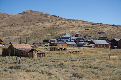 Day 5. The finish. It had turned out to be a great choice to stop the night before. In the morning it was cooler and although I still pushed my bike for a couple of miles, I made good progress, had plenty of water and the higher reaches of the route proved rideable all the way into Bodie. The state park entrance was manned but he let me through for no charge after I explained I was just passing through and out the other side. I've been to Bodie several times and even participated in a mountain bike not-race, race, a few years ago. I only stopped to refill my water in the bathrooms and then moved on. Bodie Canyon was next. I was no longer on the Caldera route and I knew that technically the road down through Bodie canyon was closed. This road is very subject to washouts and still near town I passed a road crew working on the road and grading. I had no idea if I could even get through the canyon. The upper reaches of the canyon weren't bad with only a couple of washed out creek crossings. But once past the old stateline toll house it got serious. I spent the next several hours alternately wading through the creek and working down through dry washout boulder gardens. So beautiful, but so slow, so tedious! Of course in due time I made it through the canyon and a quick downhill put me back at idyllic Fletcher Springs. I only had 14 miles back to my truck retracing the route I had ridden to get here a few days earlier. So after a nice cool off in the shade of the large Cottonwoods I ventured out into the hot sun and with no further incidents found myself back at the truck in about an hour and a half. Cracking a European beer, (I say European because don't they drink warm beer?) I leisurely broke down my gear and stowed it away, then began the fairly short drive home.