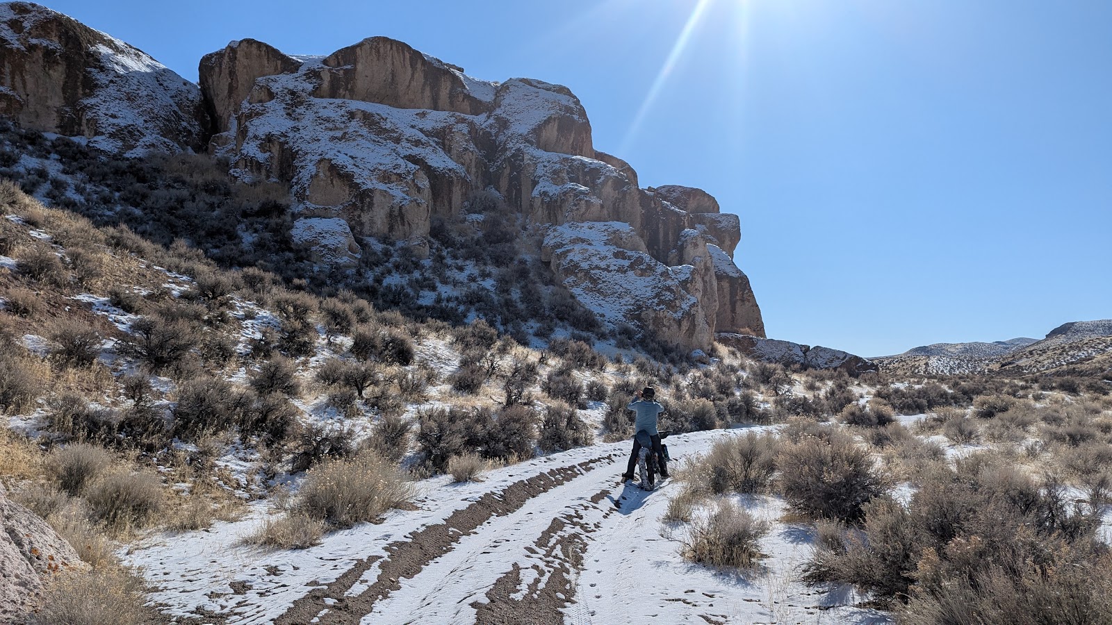 For outing #2 in 2025 I elected for a short overnighter. But it's an area I've had on the backlog for several years and winter in a low snow year seemed like an appropriate time to get some. Of course Kurstin - @bikepackingnv was in. Turns out to be an outstanding geologic short tour even with single digit temps.